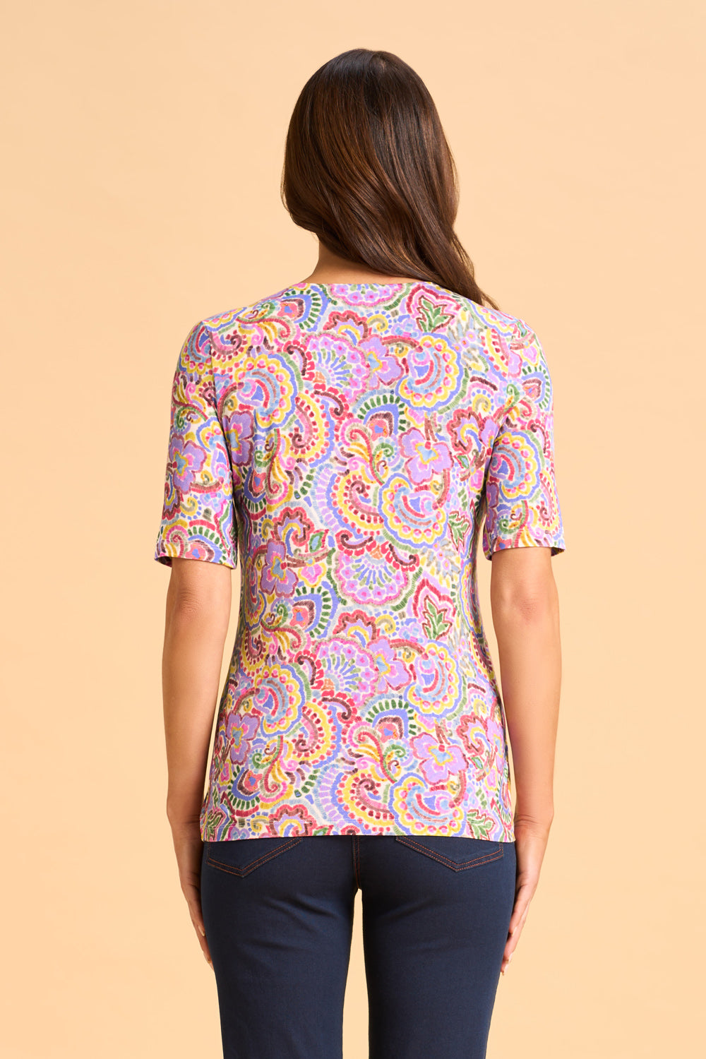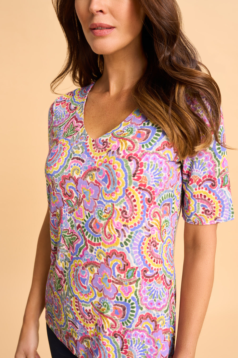 1/2 Sleeve V-Neck Tee - Multi Chintz Print