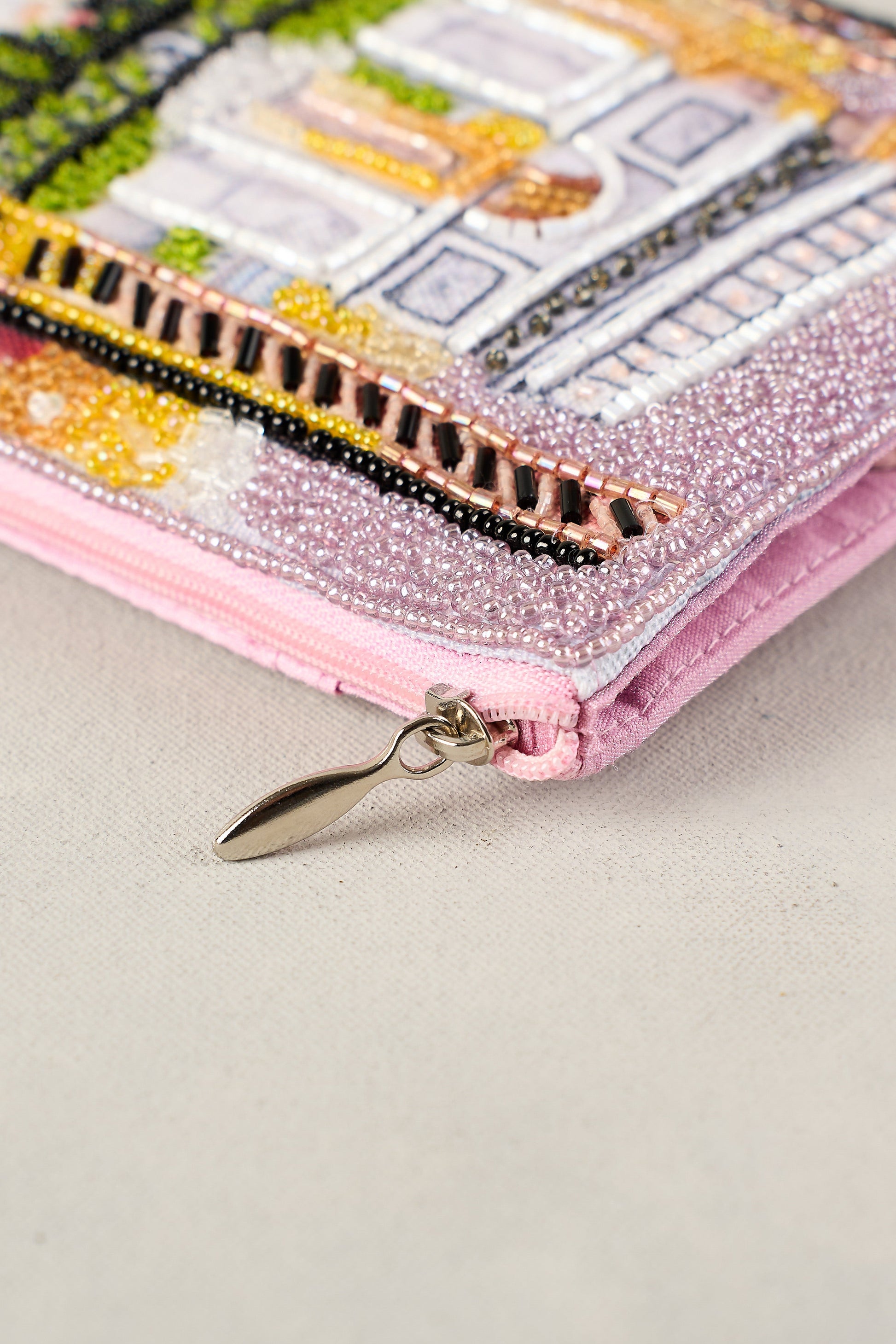 Elevate your beauty routine with our Arc De Triomphe Cosmetic Bag. This chic bag boasts a beau balcony scene and one of Paris’ most-loved landmarks. Adorned with embroidery, seed and glass bead detailing, organise your essentials effortlessly and securely with 3 handy compartments.