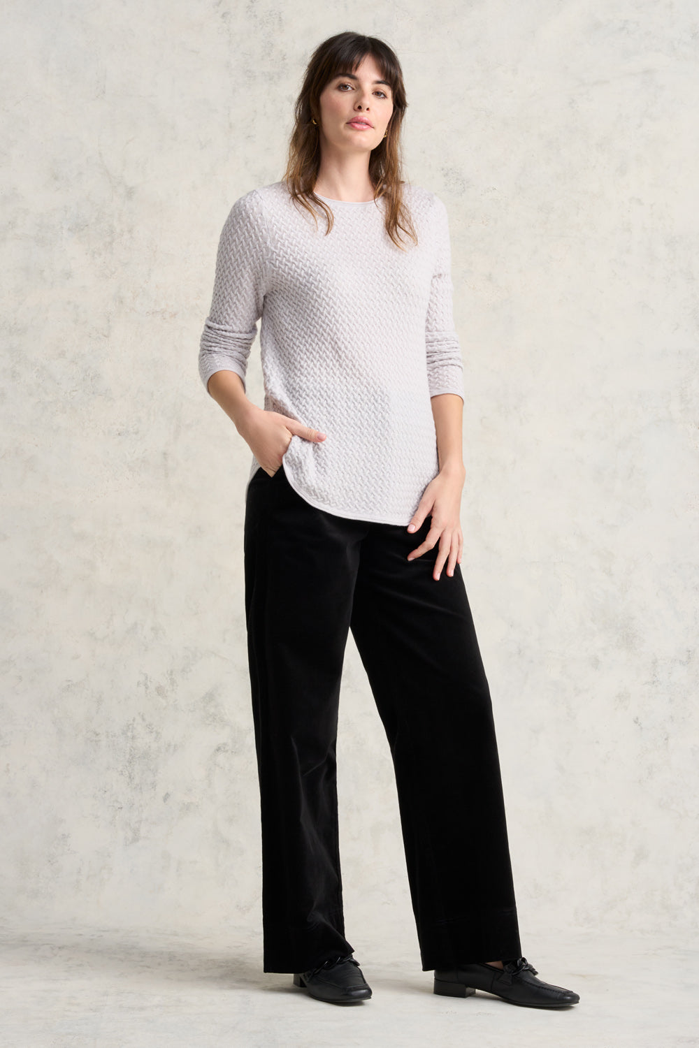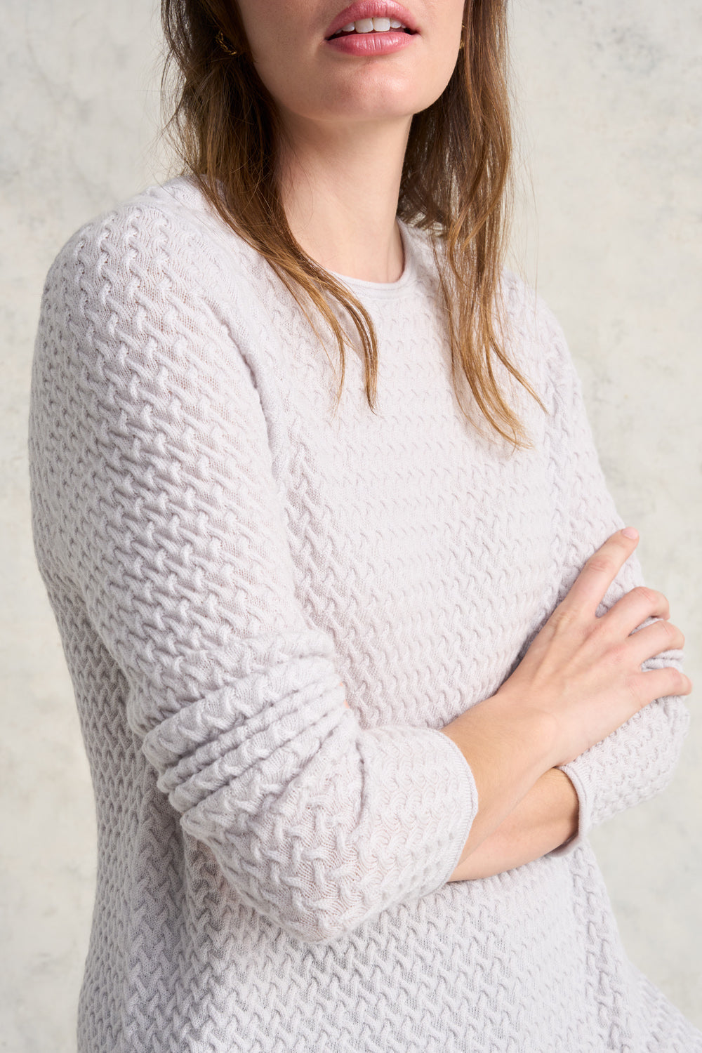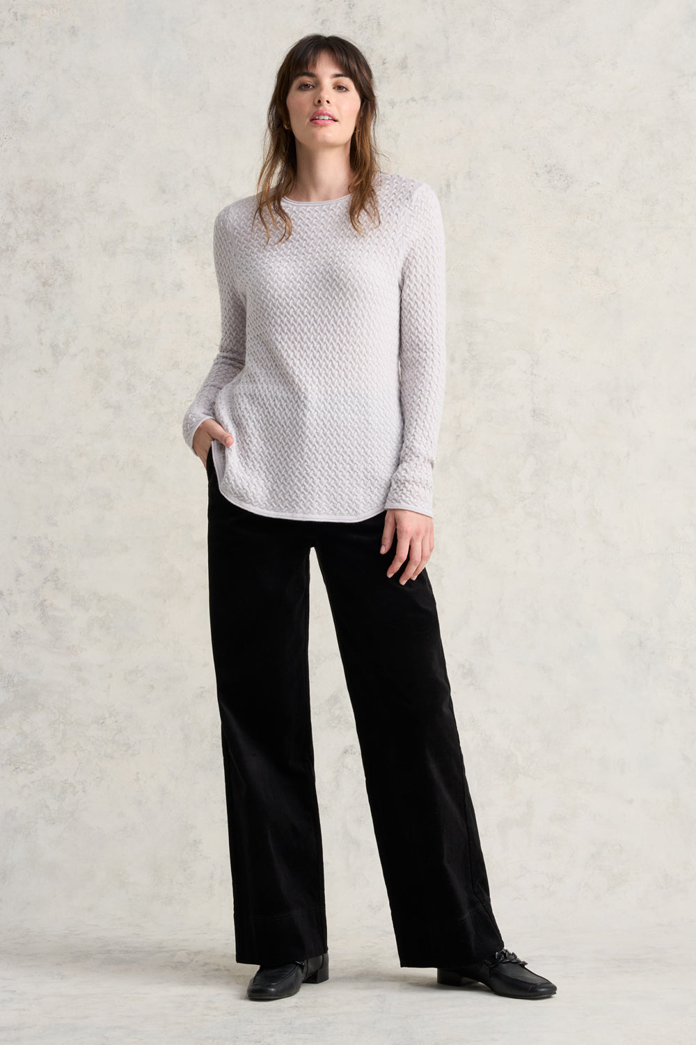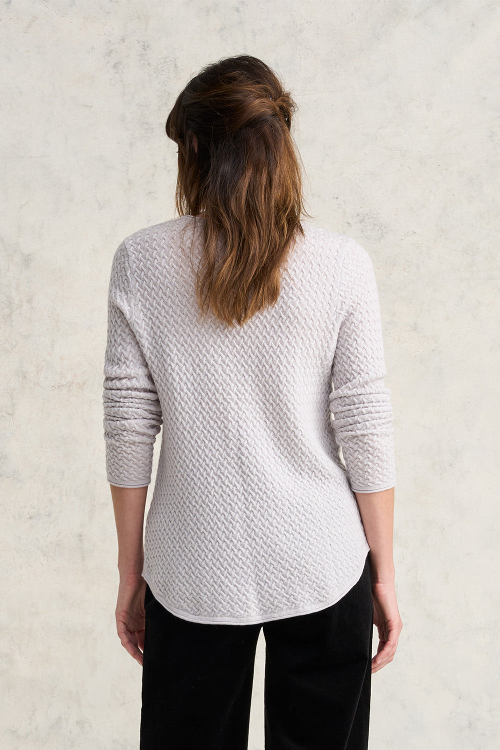 In a classic shape with a scooped hemline and relaxed fit comes our Wool Textured Jumper. Crafted from 100% Australian Merino Wool and featuring an all-over braid jacquard texture stitch, this jumper’s neutral Silver colour makes it a lovely versatile piece and a wardrobe must-have.