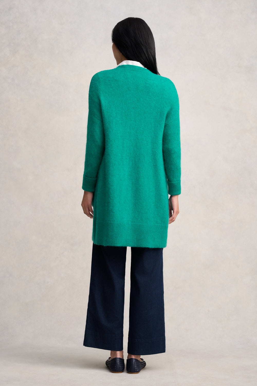 Our luxuriously fluffy Button Through Mohair Cardigan pairs cosy warmth with modern style. Crafted from our ever-popular mohair blend in a long-line length, this lightweight cardigan in vibrant Jade looks magnifique when paired with any of our essentials including our denim Bengajean®.