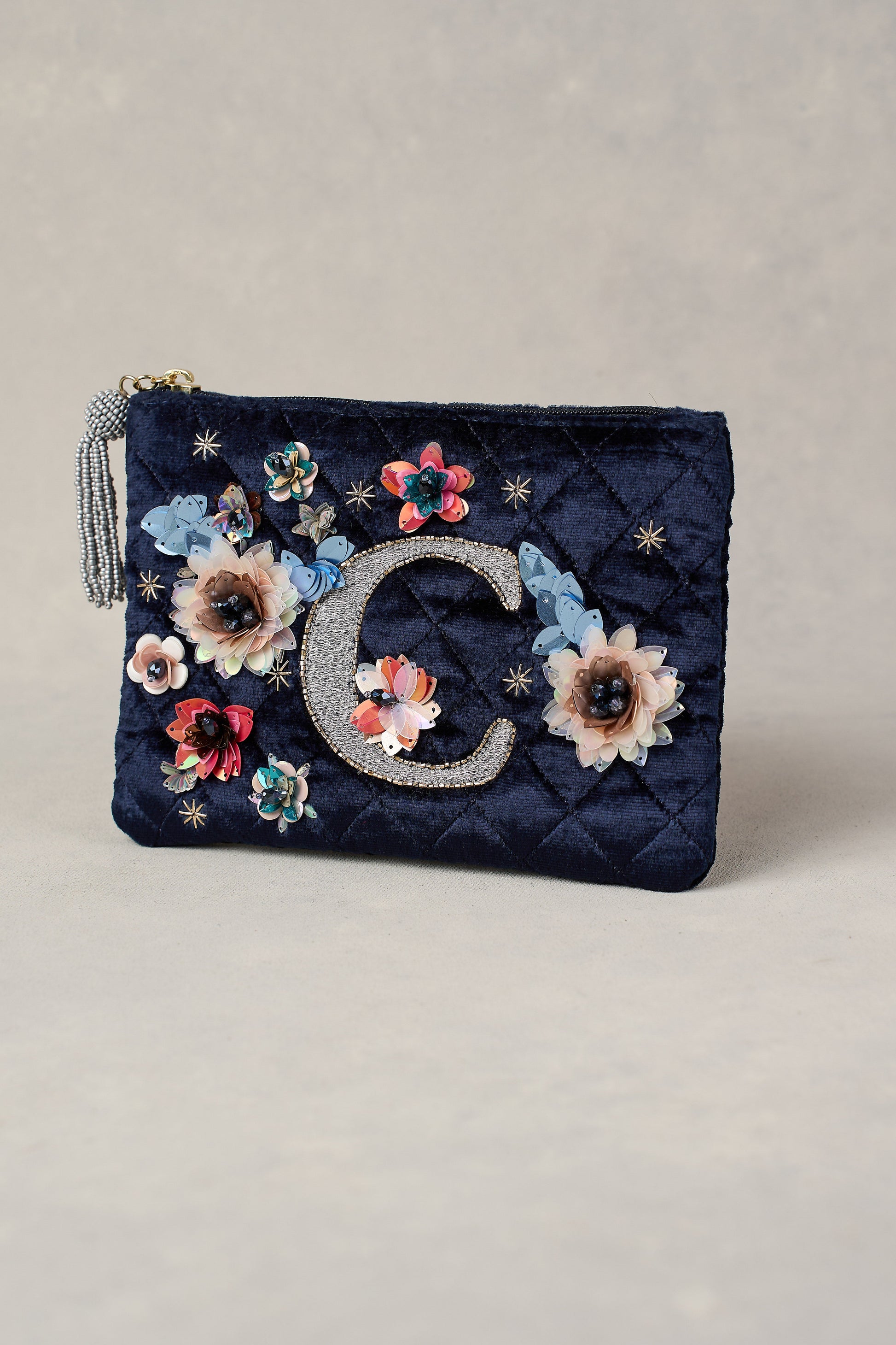 Take your cosmetics with you wherever you go in this personalised ‘C’ monogram cosmetic bag. Featuring a beautiful 3D floral design embellished with seed beads and sequins over a blue base, add a pop of colour to your beauty regime. This bag makes a lovely personal purchase or thoughtful gift for someone special this Mother’s Day.