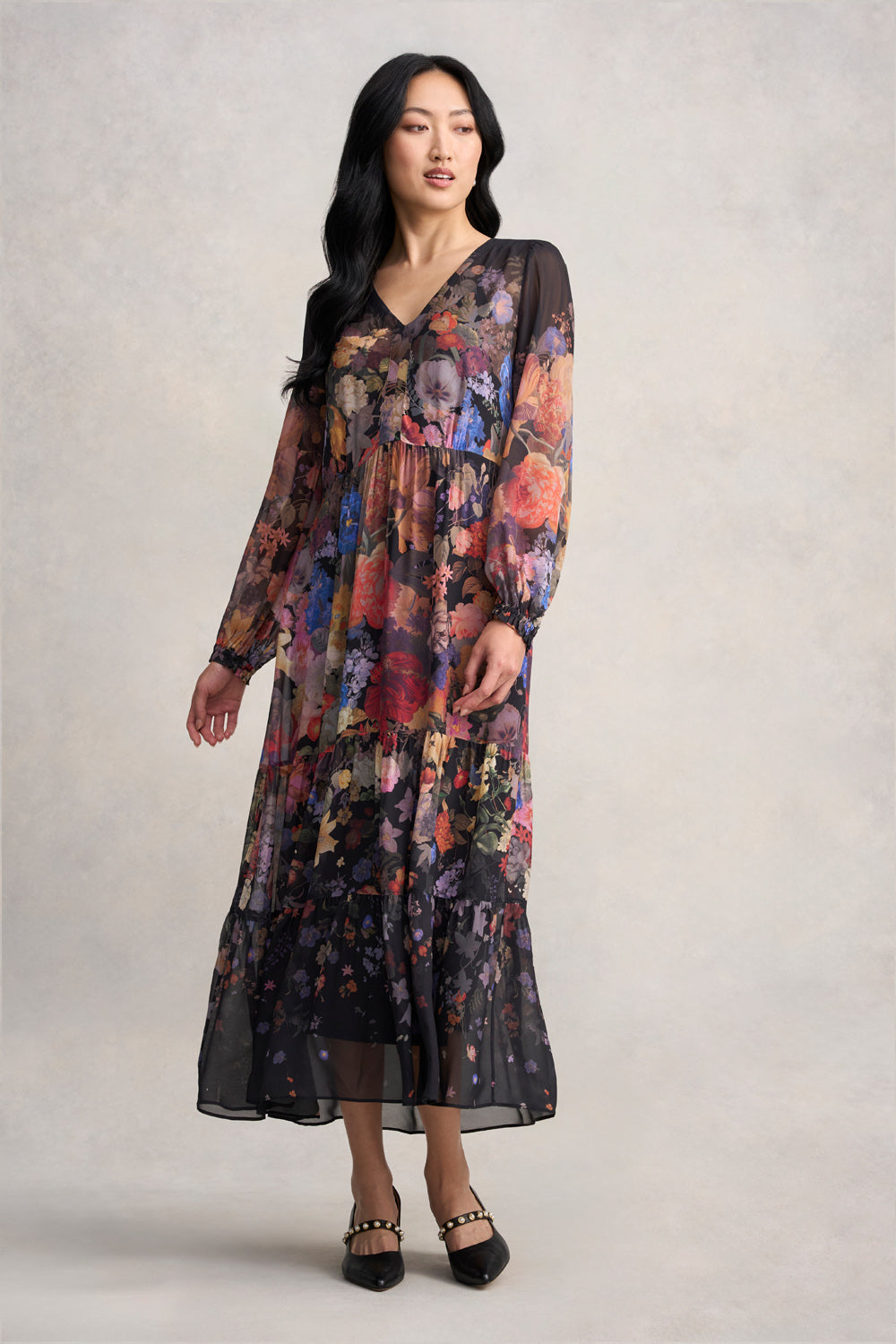 Georgette Print Dress - Midnight Floral