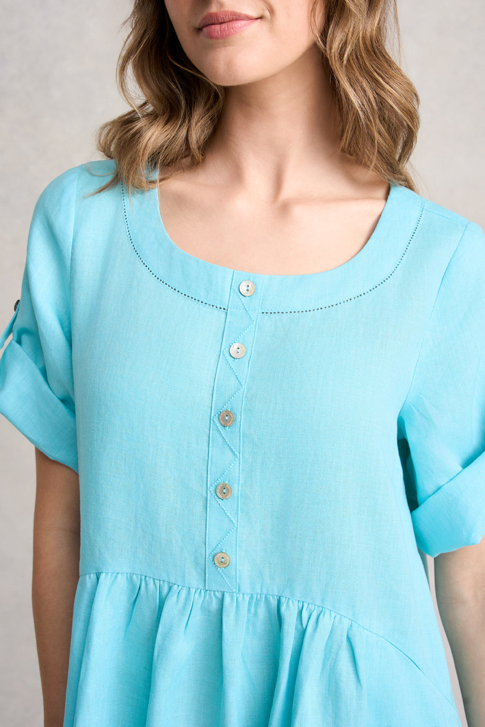 In whimsical Blue Lake comes our Button Detail Linen Dress. A much-loved Blue Illusion style, this dress is crafted from 100% French linen making it comfortable, lightweight and breathable. Slip into a pair of your favourite espadrilles and you have a complete and elegant, ready-made outfit.