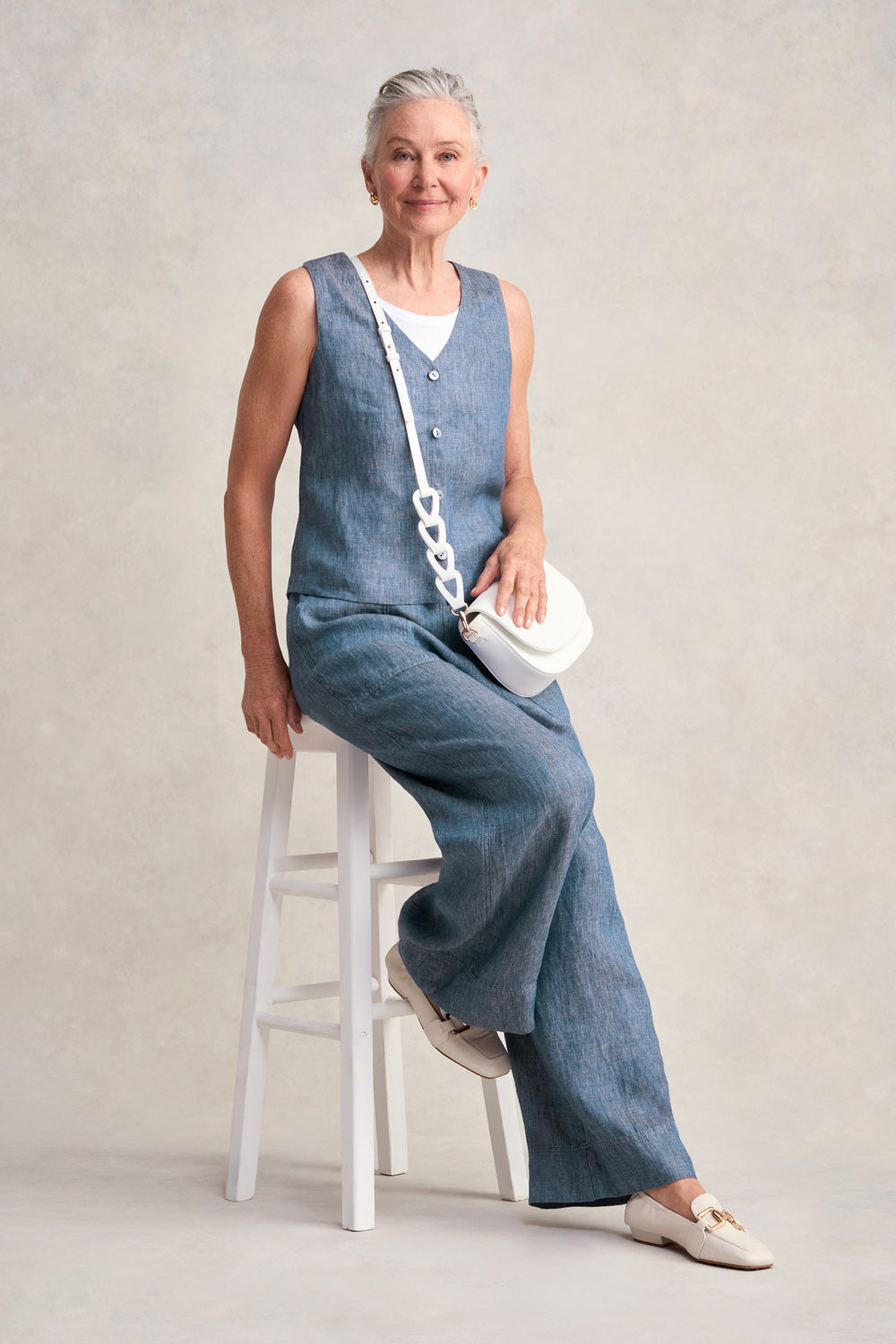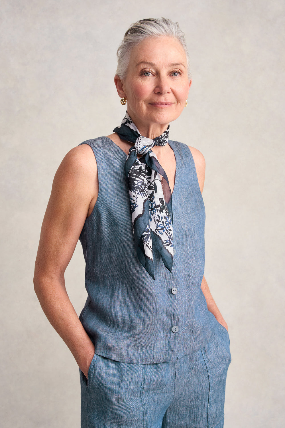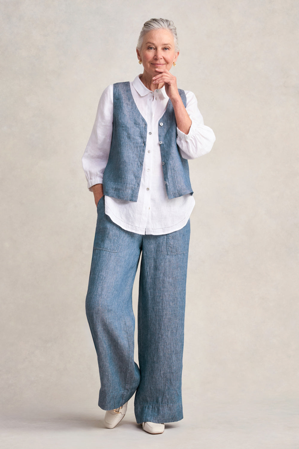 Classic Linen Vest - Indigo Twill