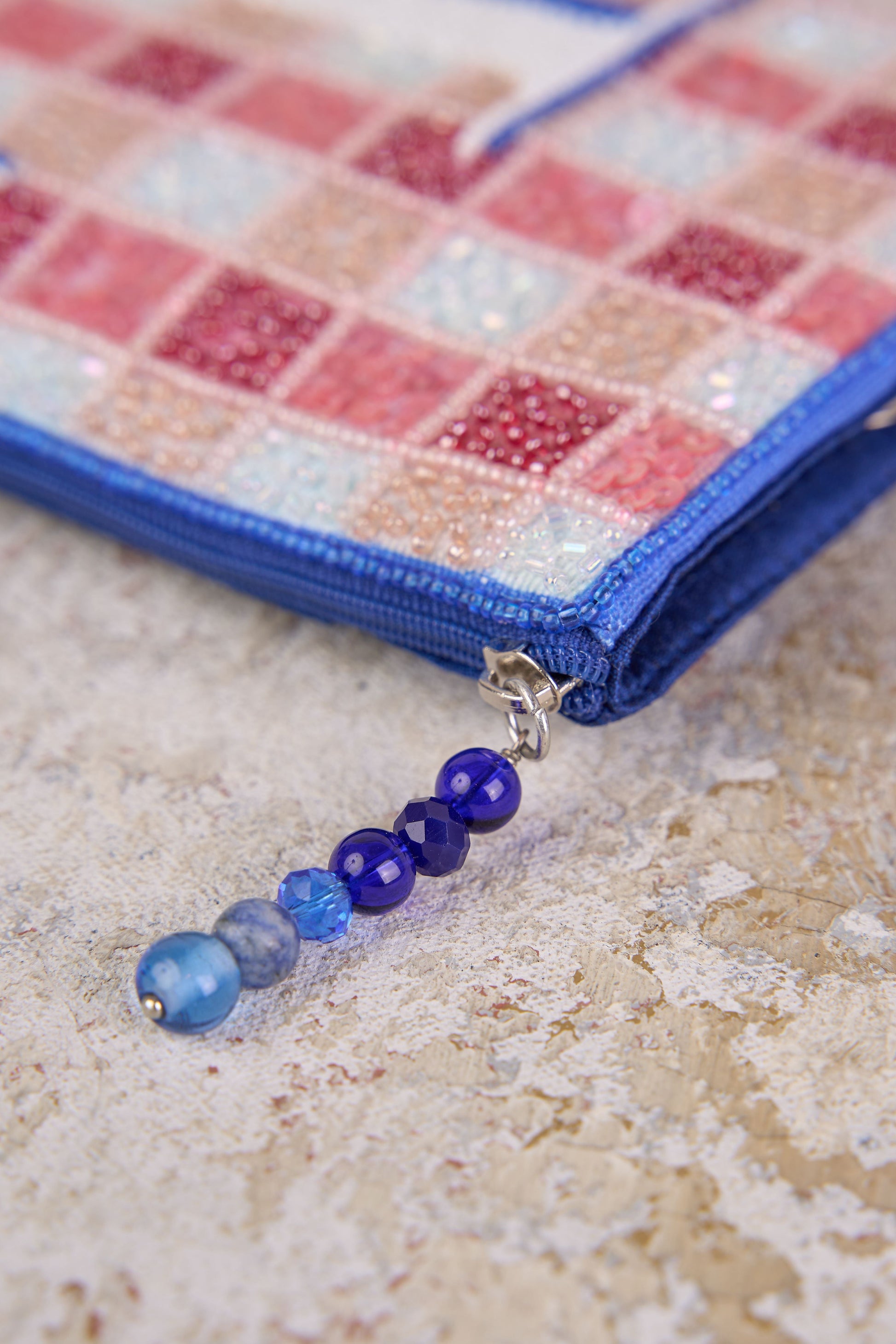 Take your cosmetics with you wherever you go in this personalised ‘L’ monogram cosmetic bag. Featuring a playful check design embellished with seed beads and sequins, add a pop of colour to your beauty regime. This bag makes a lovely personal purchase or thoughtful gift for someone special this festive season.