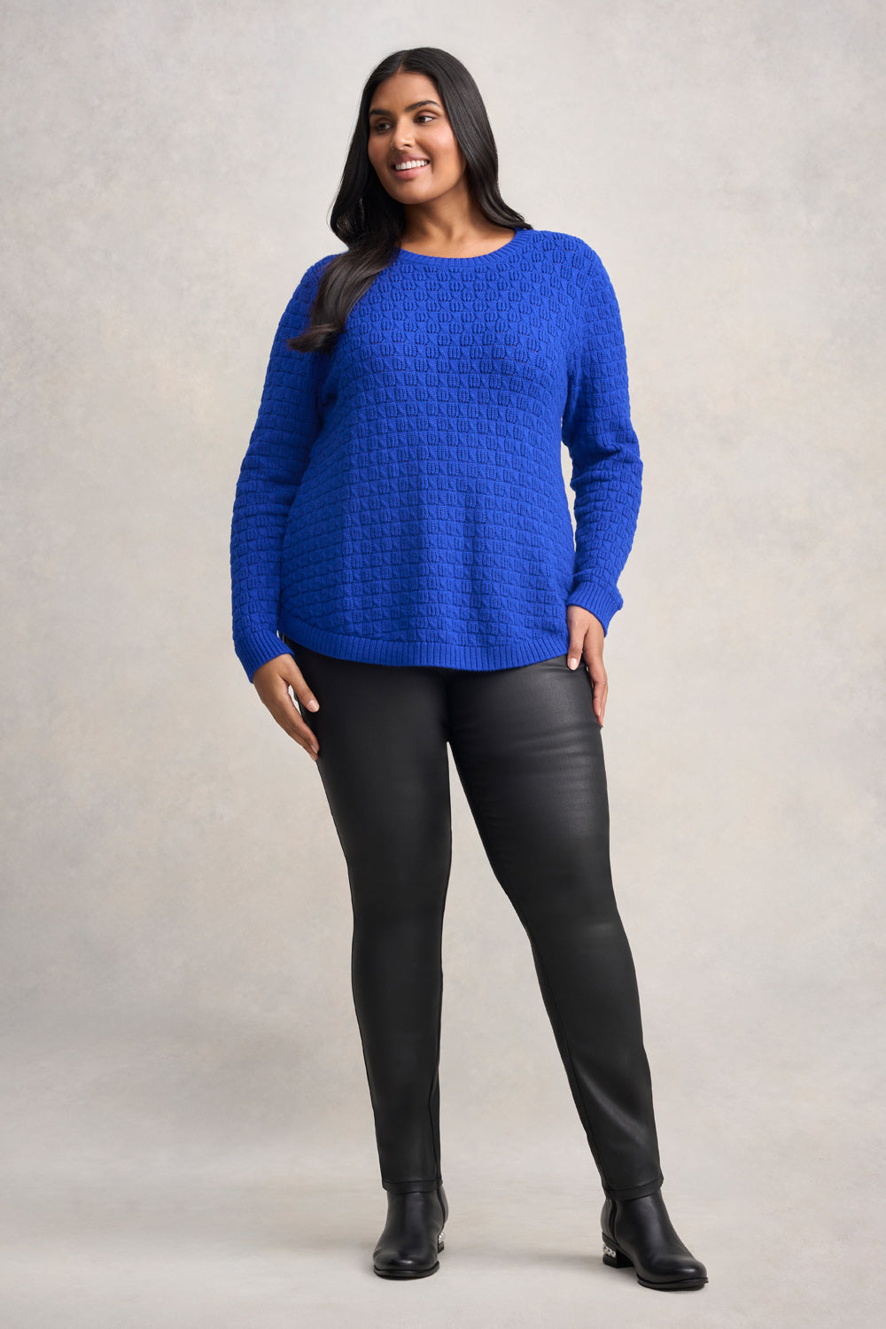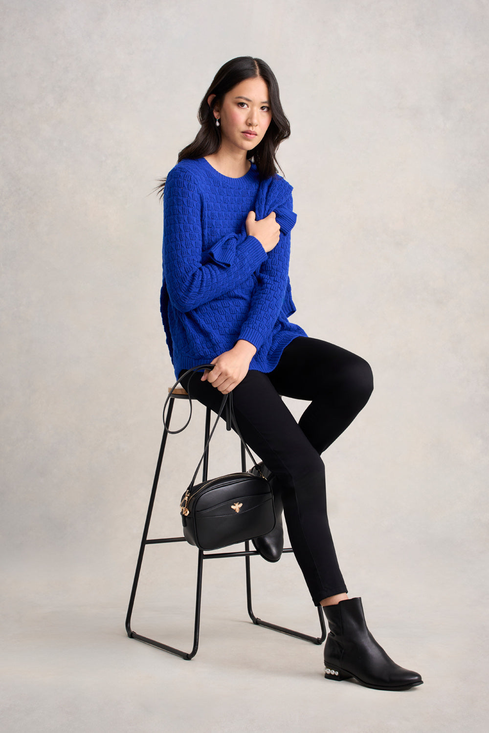 Heavenly soft and cosy, our Cotton Wool Bubble Jumper is crafted from a lovely wool blend and features a textured stitch. Part of our latest Lumière d’Hiver collection in stunning Electric Blue, this jumper boasts a crew neckline and scooped hem. It will complement your favourite Bengajeans and winter essentials, perfect for off-duty styling.