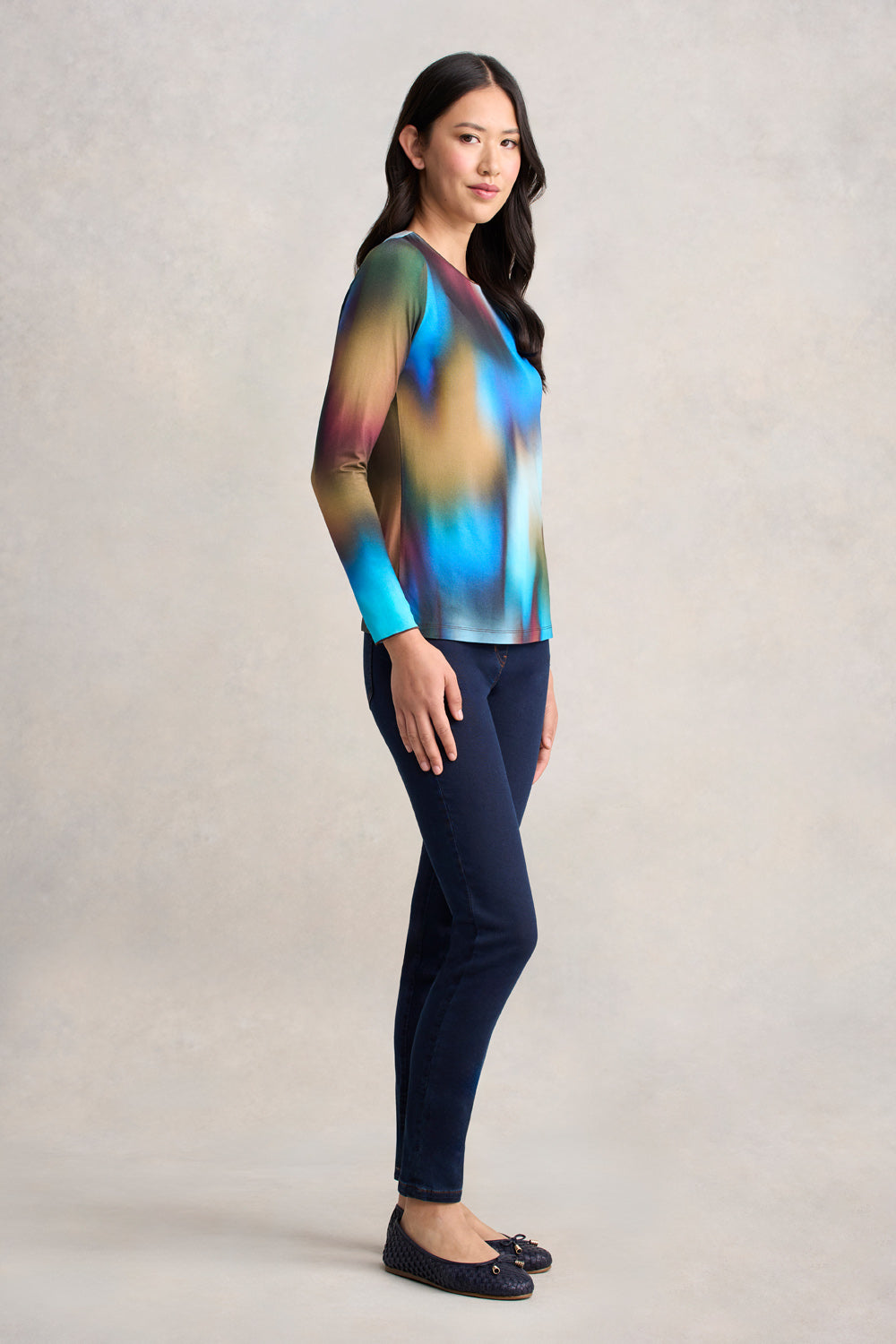 Crafted from LENZING™ ECOVERO™ certified fibres, our Long Sleeve Crew Neck Top combines playful patterns with classic comfort. Now available in the colourful Ombre print, pair this top with our signature Bengajean® for a look that is casual yet chic.