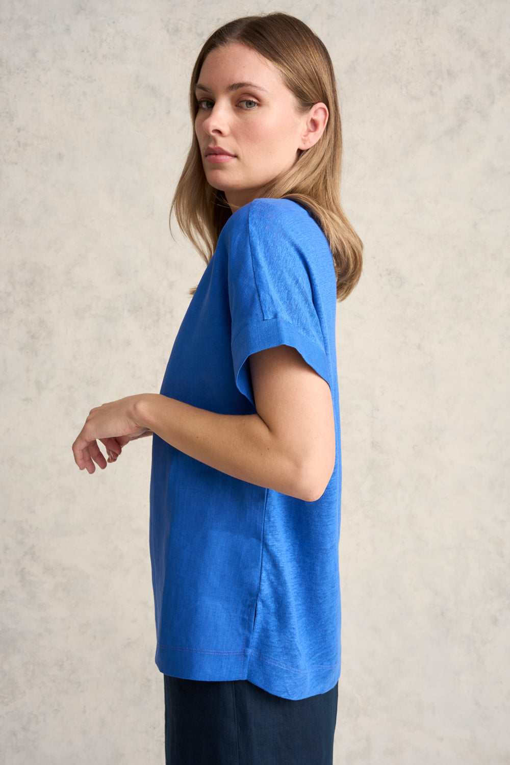 A Blue Illusion favourite, the Linen Mix Top is now available in Indigo Blue. Featuring a woven linen front and jersey linen back, this top is ultra-comfortable and versatile. Dress it up or wear it with our signature Bengajean® for a smart casual look.