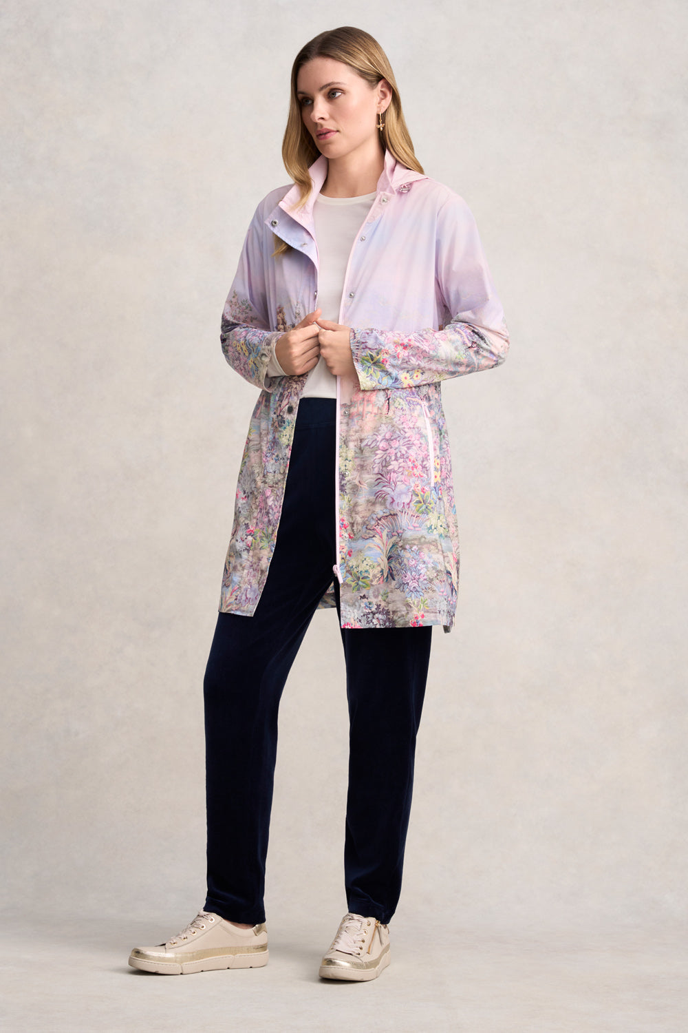 This lively and fresh spray jacket will be your new winter go-to. The pièce de résistance of our latest leisurewear offering, it features the stunning Scenic Sunset print in a palette of pastel colours. Wear it your way with the help of the handy drawstring tie at the waist and detachable hood. It also comes with a matching drawstring pouch, meaning you can pack it up when you’re on the go. Shower-resistant, you’ll always be prepared, whether you’re headed for a weekend away or are simply spending time outdoors.