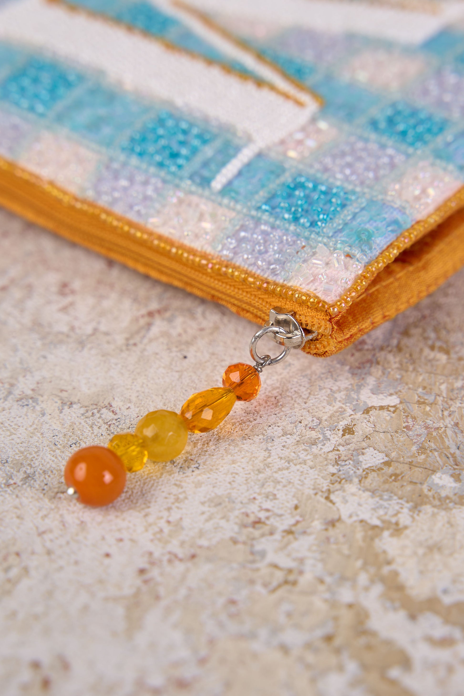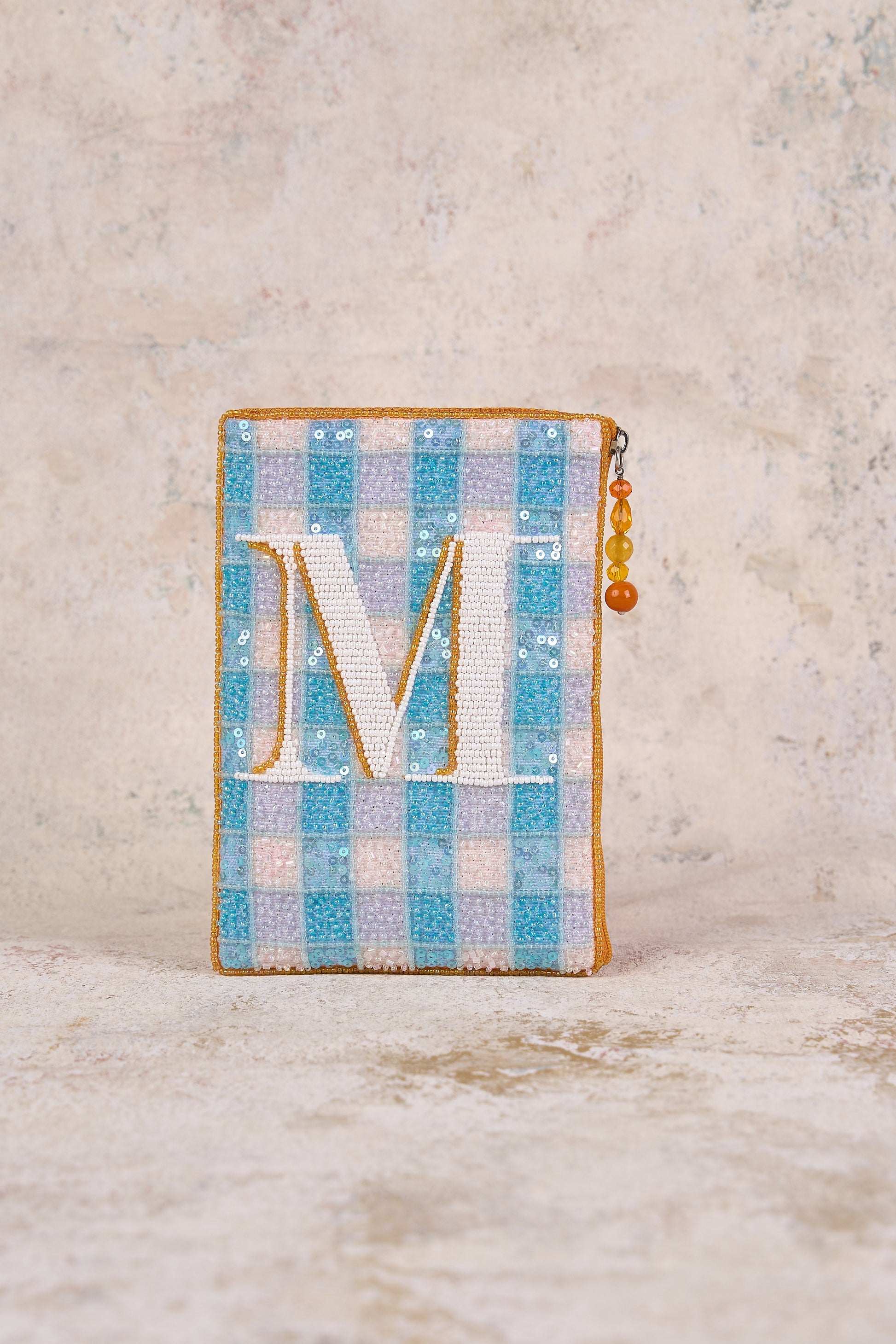 Take your cosmetics with you wherever you go in this personalised ‘M’ monogram cosmetic bag. Featuring a playful check design embellished with seed beads and sequins, add a pop of colour to your beauty regime. This bag makes a lovely personal purchase or thoughtful gift for someone special this festive season.