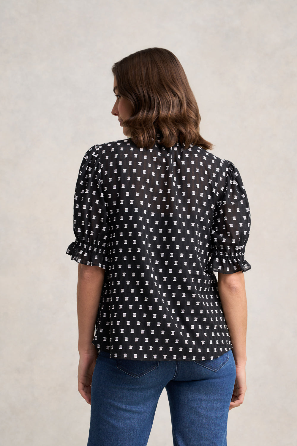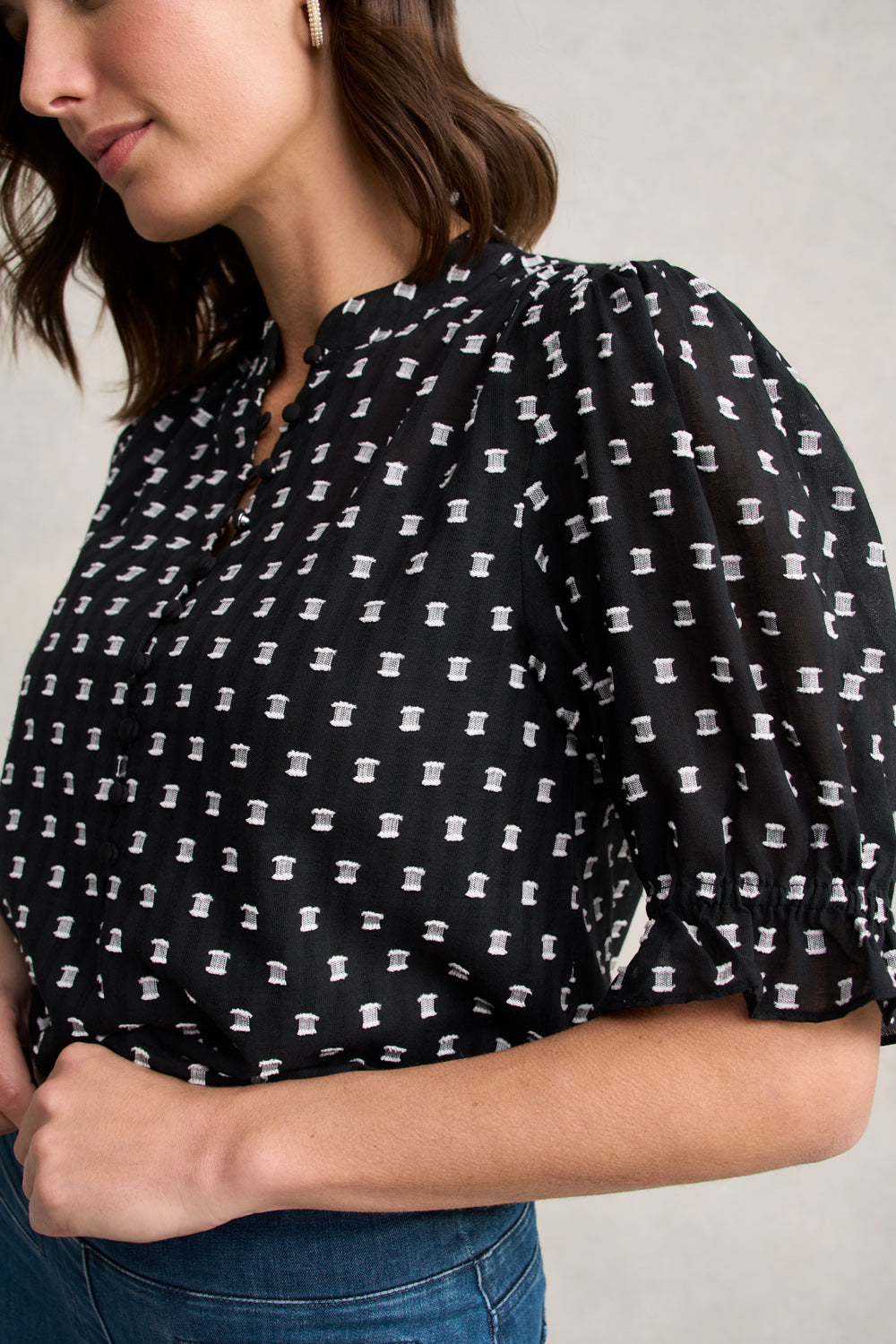 Airy and artful, this monochrome blouse is a fresh take on your favourite blouse. Crafted from lightweight cotton with puff sleeves, ruffle trims and functional buttons, it moves with ease from weekday meeting to weekend escape.