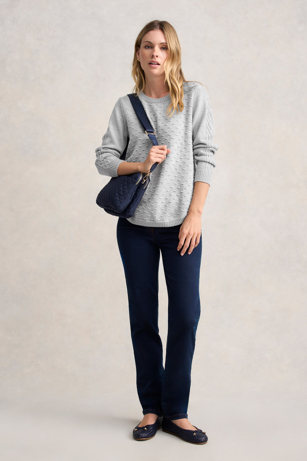 Oh la la! Fall in love with this luxuriously warm jumper in Frost. Crafted from 100% Australian Merino wool, the jumper features a sweet popcorn detail and a timeless cable sleeve. Pair it with our must-have Bengajean® and one of our beautiful scarves for instant French-inspired style.