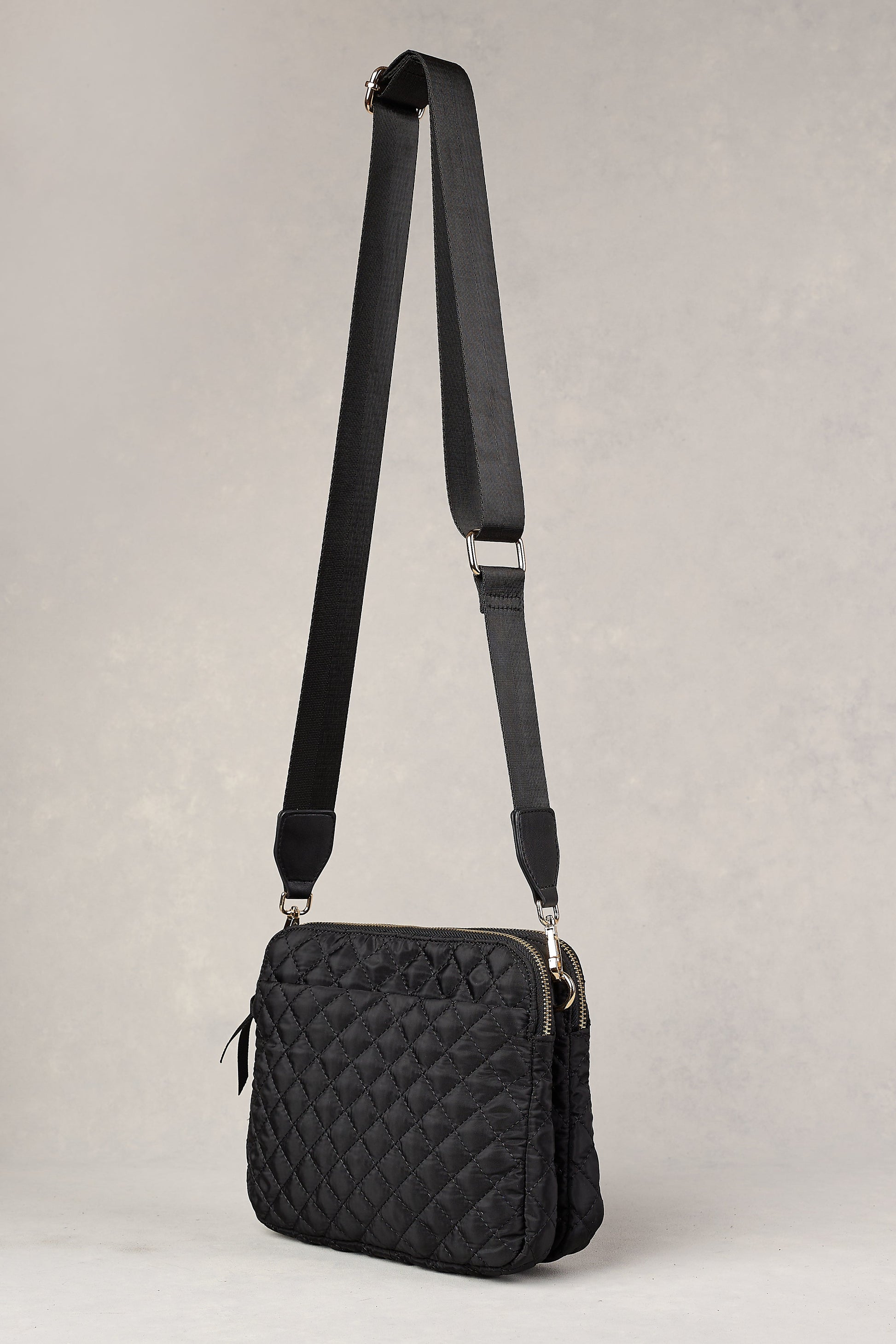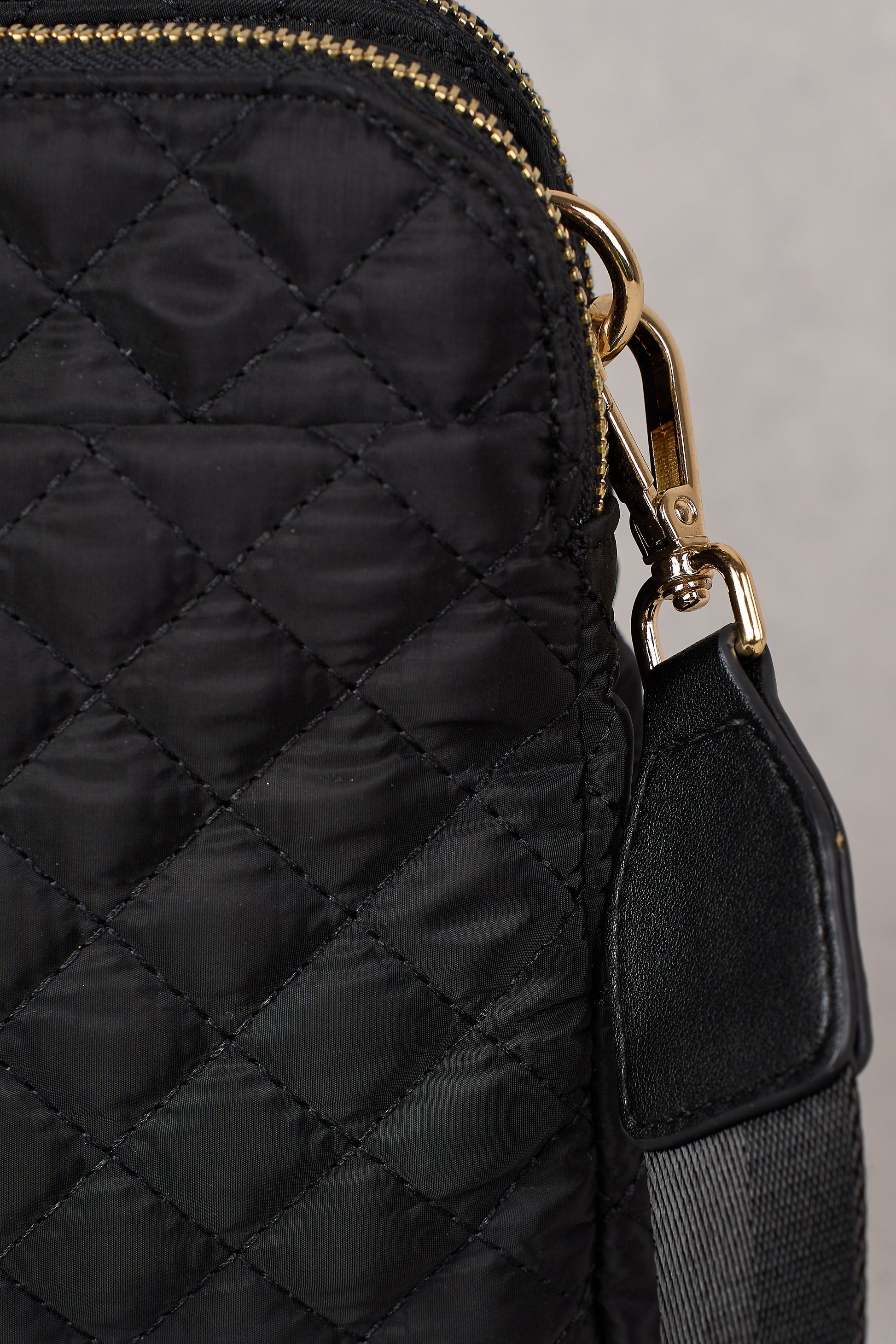 Designed to be worn across the body, the Naomi Quilted Crossbody Bag est ici and now available in Black. Great for travel and featuring pretty diamond quilted detailing, this bag has plenty of storage and a comfortable woven guitar strap that is both adjustable and detachable. Complete your look with this simple yet chic design.
