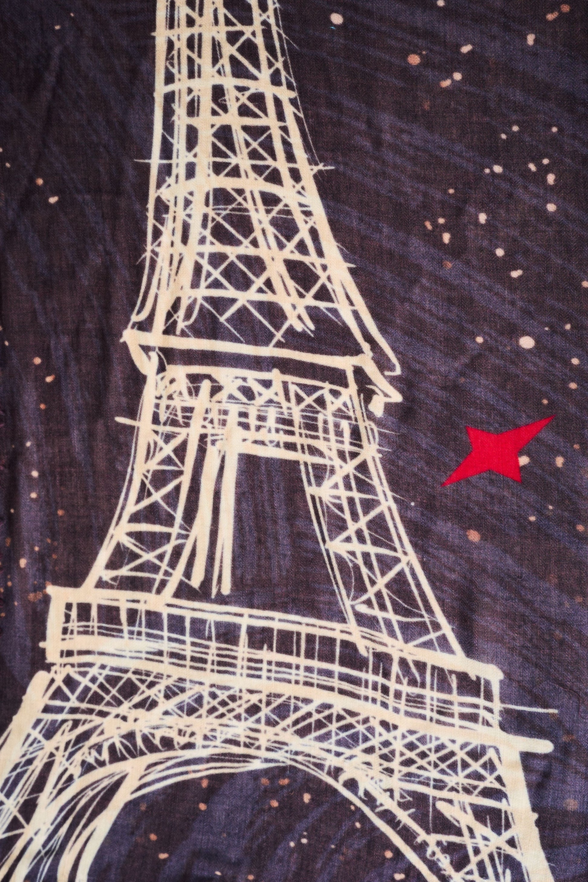 The design of our Night Skies Bastille Scarf is a love letter to France. Featuring an illustration of the Eiffel Tower and a starry night sky, this scarf is crafted from a wool and modal blend. A wintery scarf perfect for completing any look.