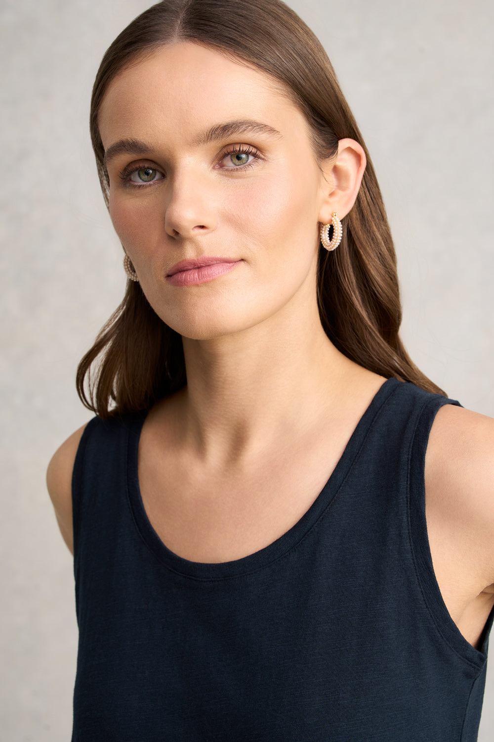 An essential tank crafted from organic cotton in Ink with superior strength and smoothness. Keeping you cool and comfortable during the warmer days or as a warming base layer through the winter months.