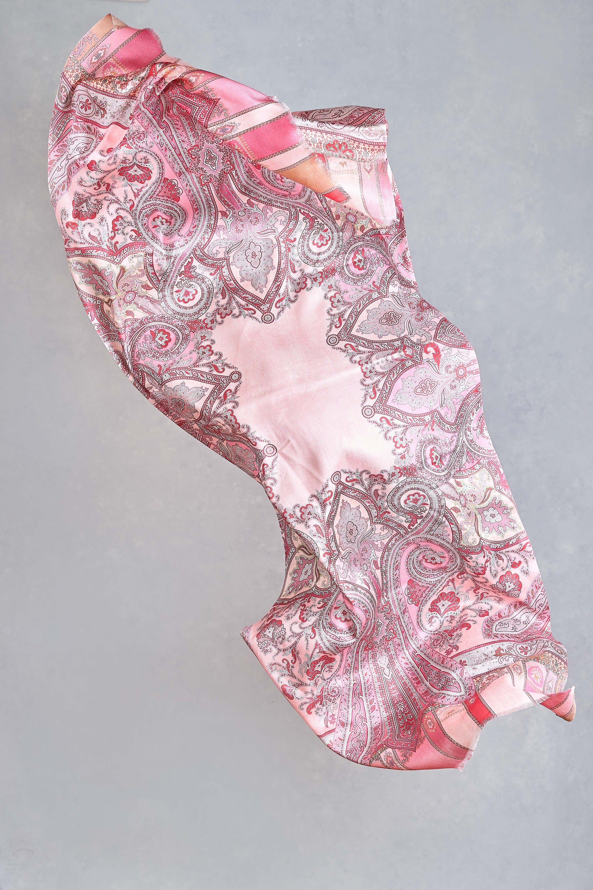 Infused with colour and classic artistry, this pure silk scarf features an ornate paisley print in rich, layered tones. Generously sized for styling versatility, it’s a chic accent to tie, drape or knot.