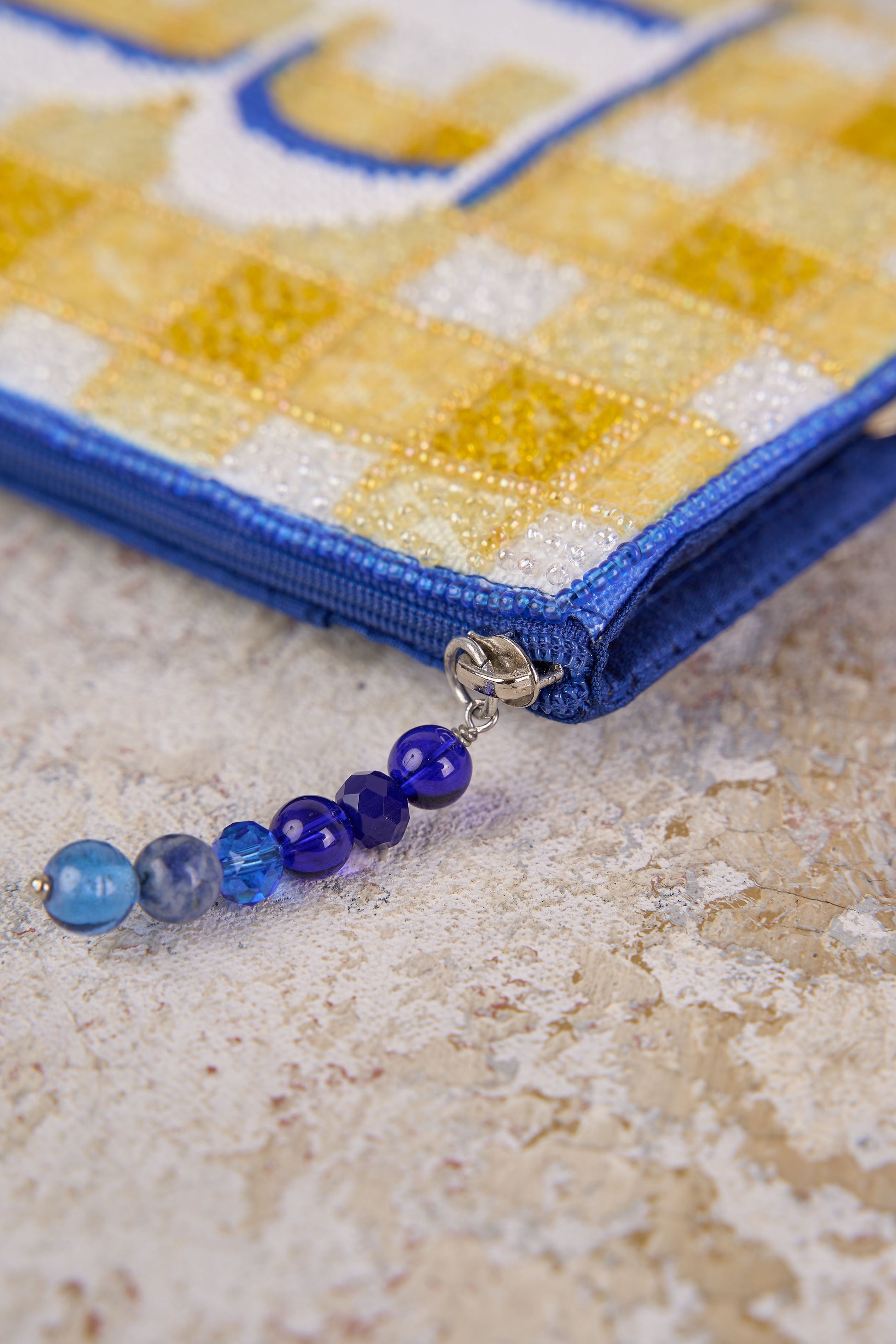 Take your cosmetics with you wherever you go in this personalised ‘R’ monogram cosmetic bag. Featuring a playful check design embellished with seed beads and sequins, add a pop of colour to your beauty regime. This bag makes a lovely personal purchase or thoughtful gift for someone special this festive season.