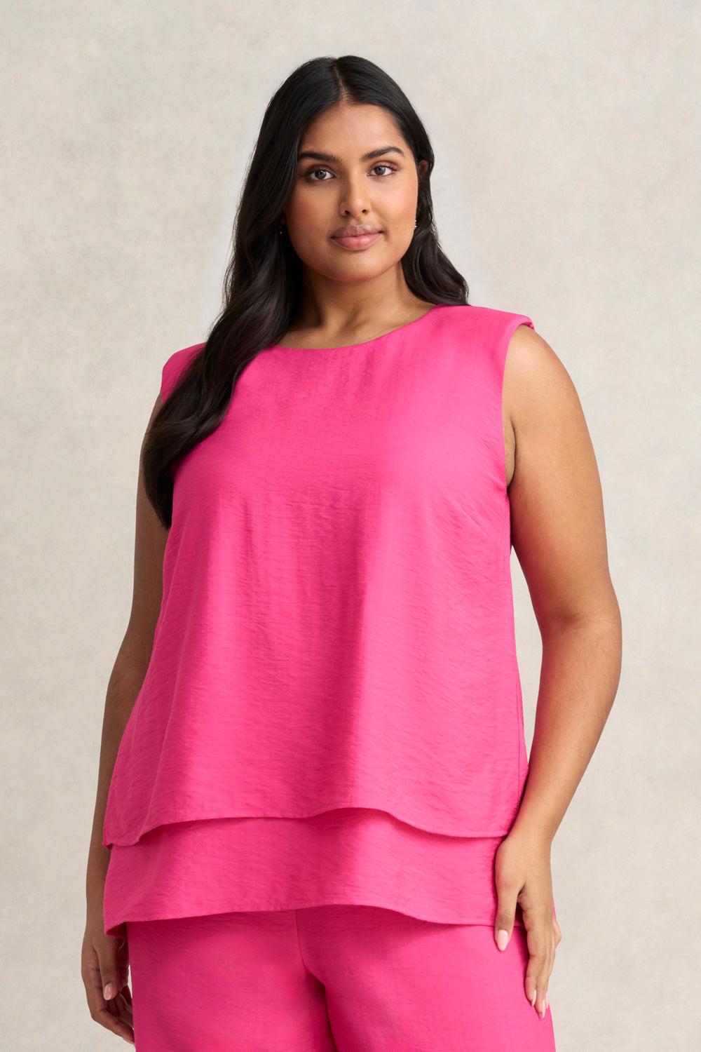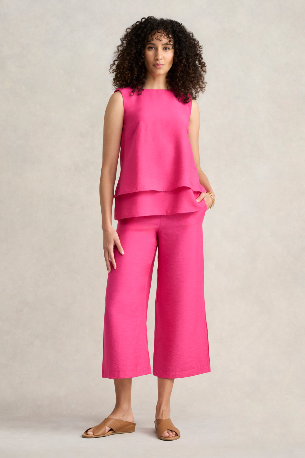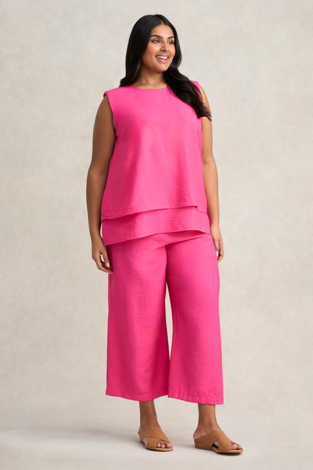 This Fiery Rose-coloured camisole from our Special Occasion collection showcases a double layer and shoulder pads for a more formal, structured look. A striking piece that matches our 7/8th Wide Leg Pant to create a block colour suit, this is spring outfitting at its best.