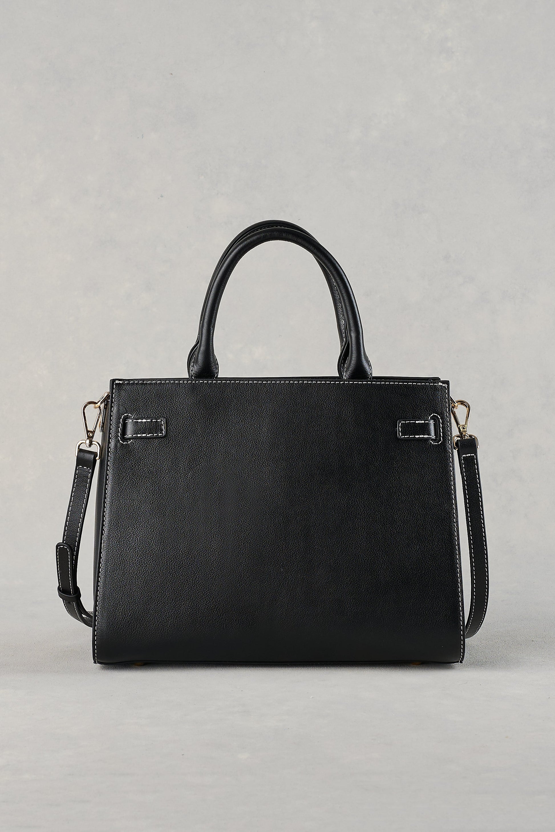 Refined and remarkably practical, this structured leather tote in classic Black is your go-to for polished everyday styling. Featuring gold metal hardware and a signature bee motif, its three compartments and detachable crossbody strap bring both elegance and ease to your day.