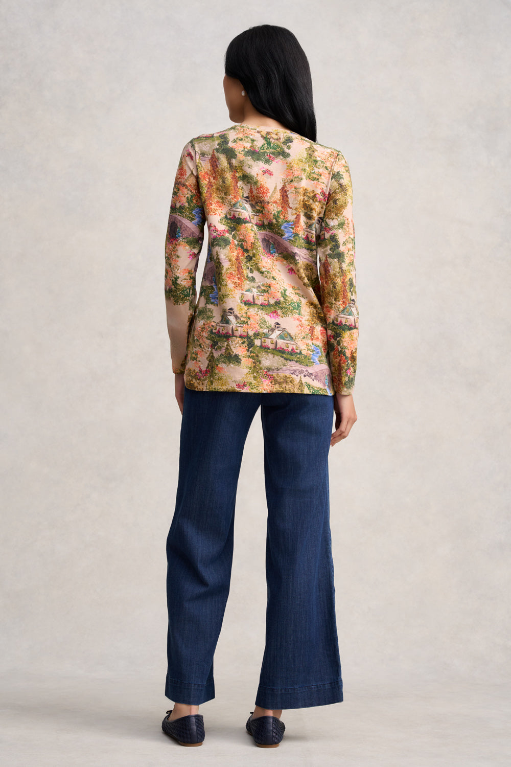 Featuring the Italian-designed Autumn Cottage print, this Long Sleeve Organic Cotton T-Shirt is undeniably charming with a pastel colour palette of peach, blue and pink. Colourful and joyful, add some joie de vivre to your next outfit with this relaxed style. Pair it with your favourite Bengajean® et voilà, you’re ready to go.